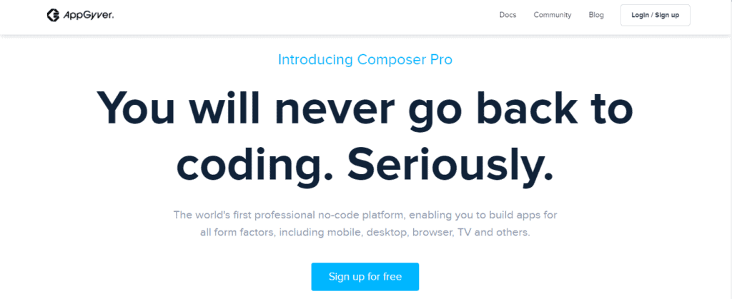 This is one of the best free no-code app builders suitable for multiple types of apps. AppGyver can build mobile, desktop, browser, and TV apps, among others.